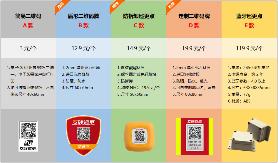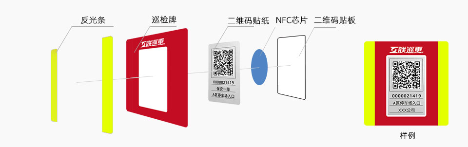該巡更點可選將:125Khz RFID 、二維碼、NFC標簽組合在一起,成復合巡更點