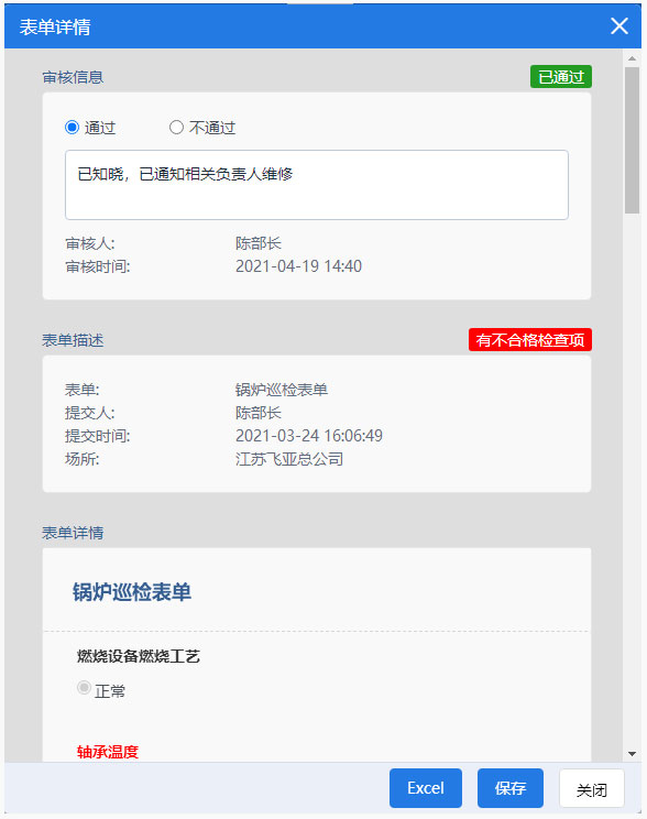 巡檢過程中,填寫的表單中有不合格項目時,你可能希望系統(tǒng)能自動提交一個維修工單,從而實現(xiàn)閉環(huán)管理。*該功能需要定制API。