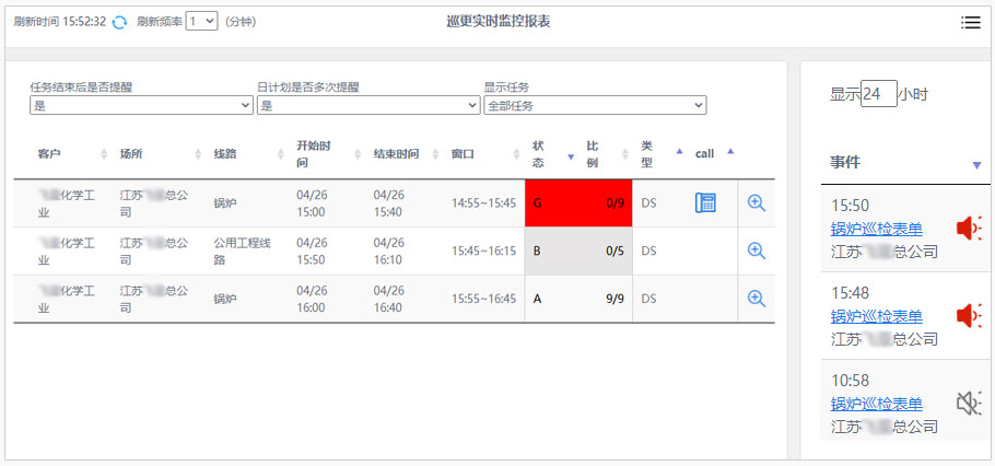 當表單中包含不合格檢查項時,“實時監(jiān)控”屏幕上會自動彈出報警提醒