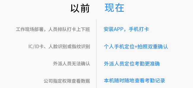 手機(jī)下載APP登錄軟件考勤,響應(yīng)復(fù)工新政策號(hào)召無(wú)接觸,避免了人員接觸、排隊(duì)、指紋接觸等苦惱。